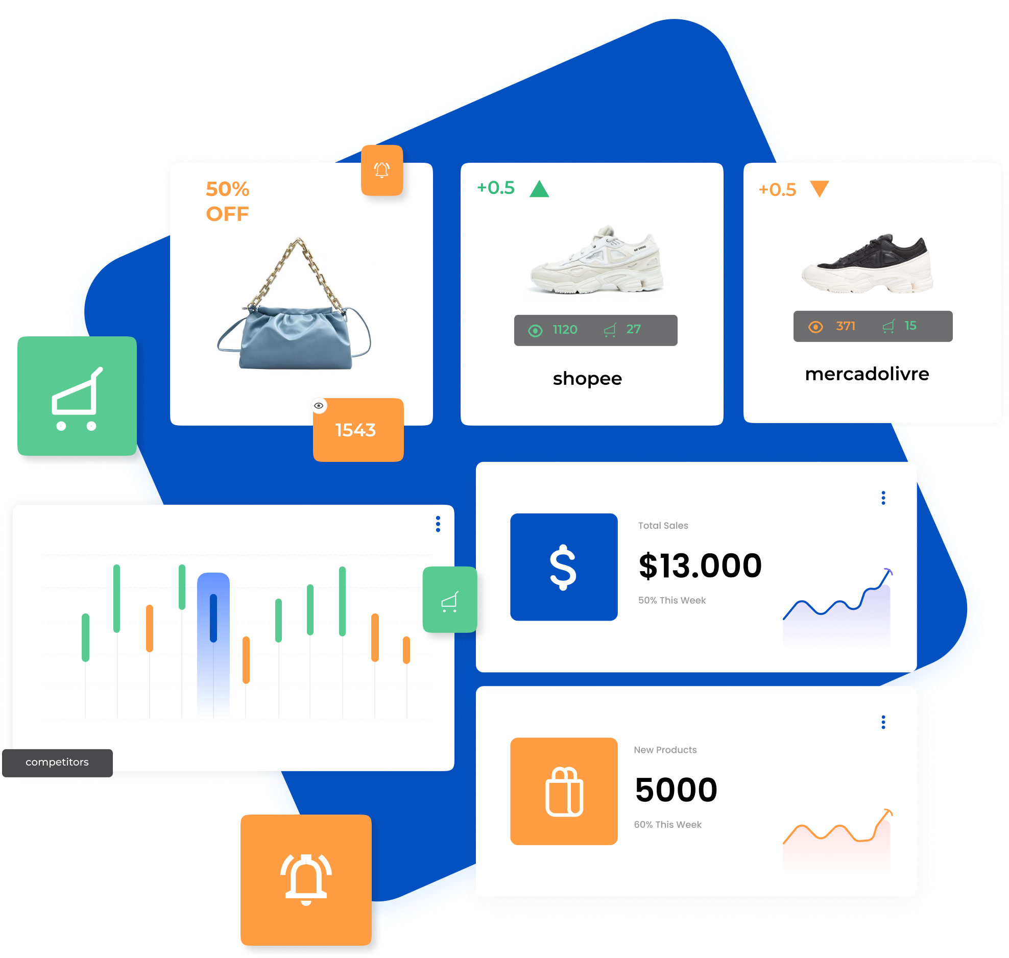 Assistência especializada para entrar em marketplaces e aumentar as vendas online. Uma ampla gama de serviços fundamentais à disposição, bem como uma plataforma digital para análises detalhadas.